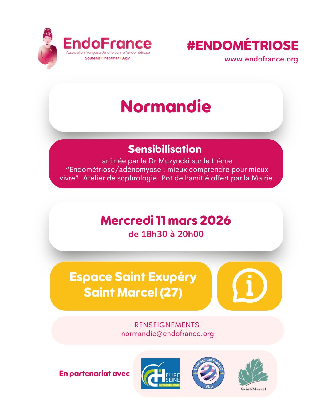 Le Saint-Marcel Football Club est fier de s’associer à l’association EndoFrance Normandie pour organiser une soirée de sensibilisation à l’endométriose et à l’adénomyose, deux maladies chroniques qui touchent de nombreuses femmes et restent encore trop souvent invisibles.